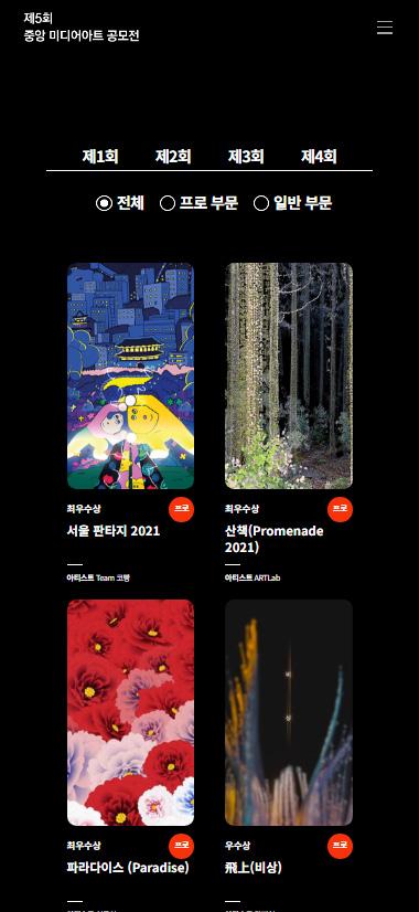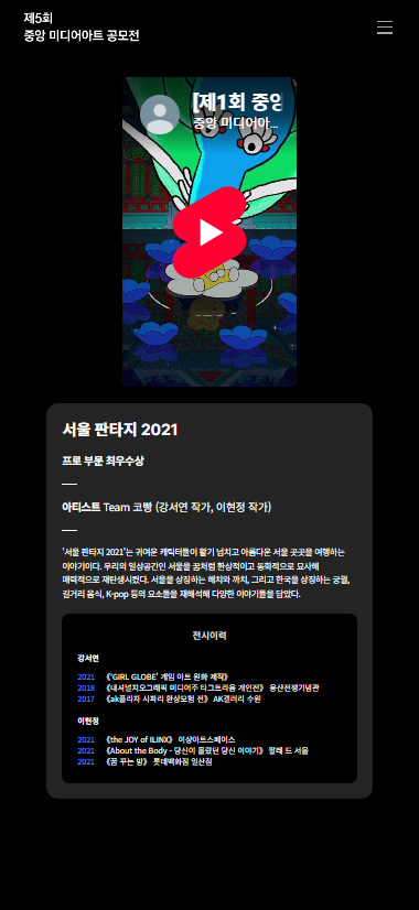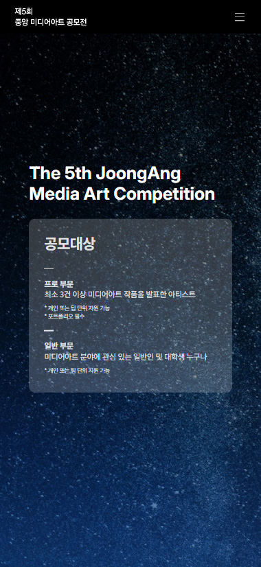 - · 제5회 중앙 미디어아트 공모전] 공식 사이트 제작