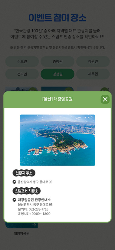 · 한국관광 100선 관광지 홍보/방문 증대 목적의 스탬프투어 이벤트 기획/제작/퍼블리싱