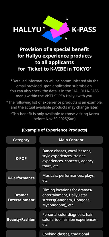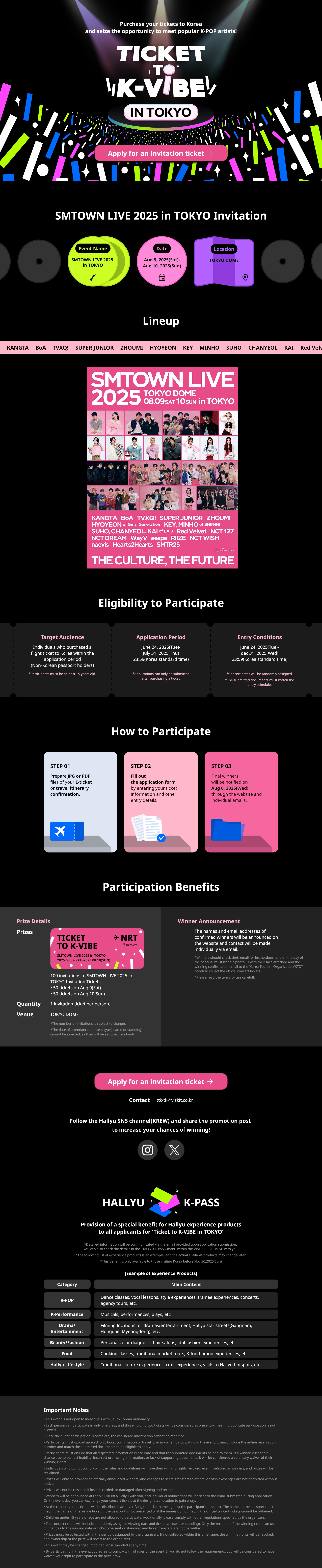 - · TICKET TO K-VIBE 프로모션을 위해 키비주얼과 콘서트 포스터를 결합한 비주얼을 개발하여, 프로모션별 차별성을 강화하고 메시지 전달력 강화